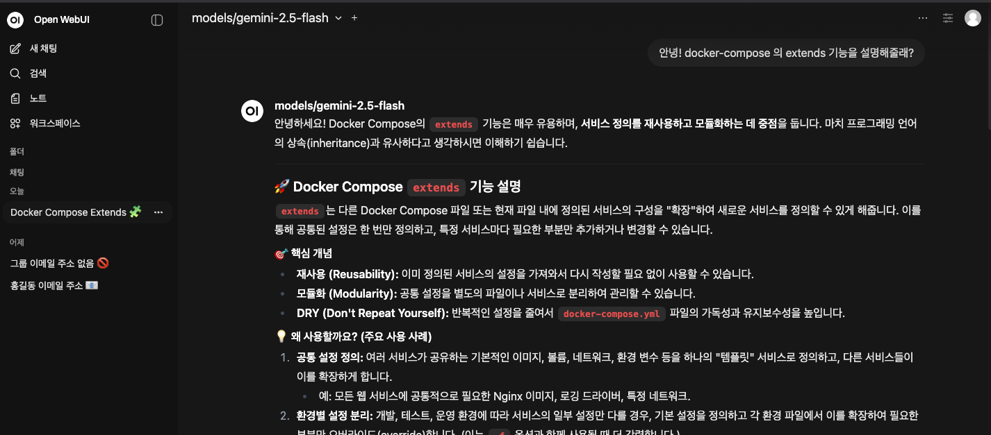 - Open WebUI는 단순한 GUI를 넘어, 커스텀 LLM 서비스를 구축할 수 있는 플랫폼입니다.