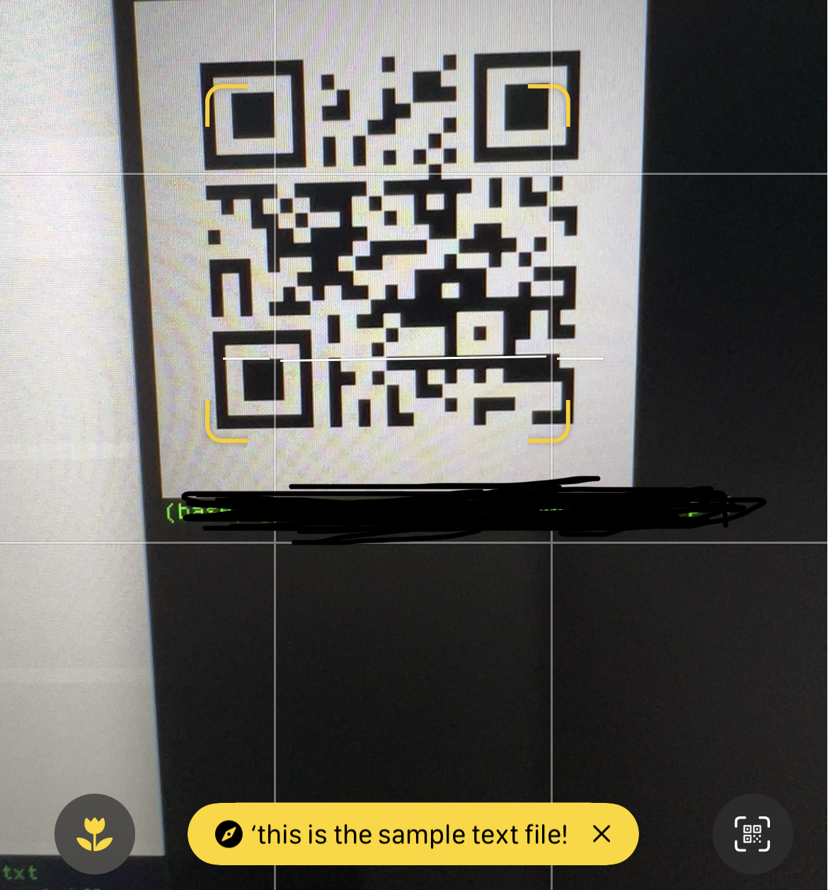 스마트폰으로 QR 코드를 촬영하면, sample.txt에 작성한 텍스트 내용이 그대로 화면에 표시된다.