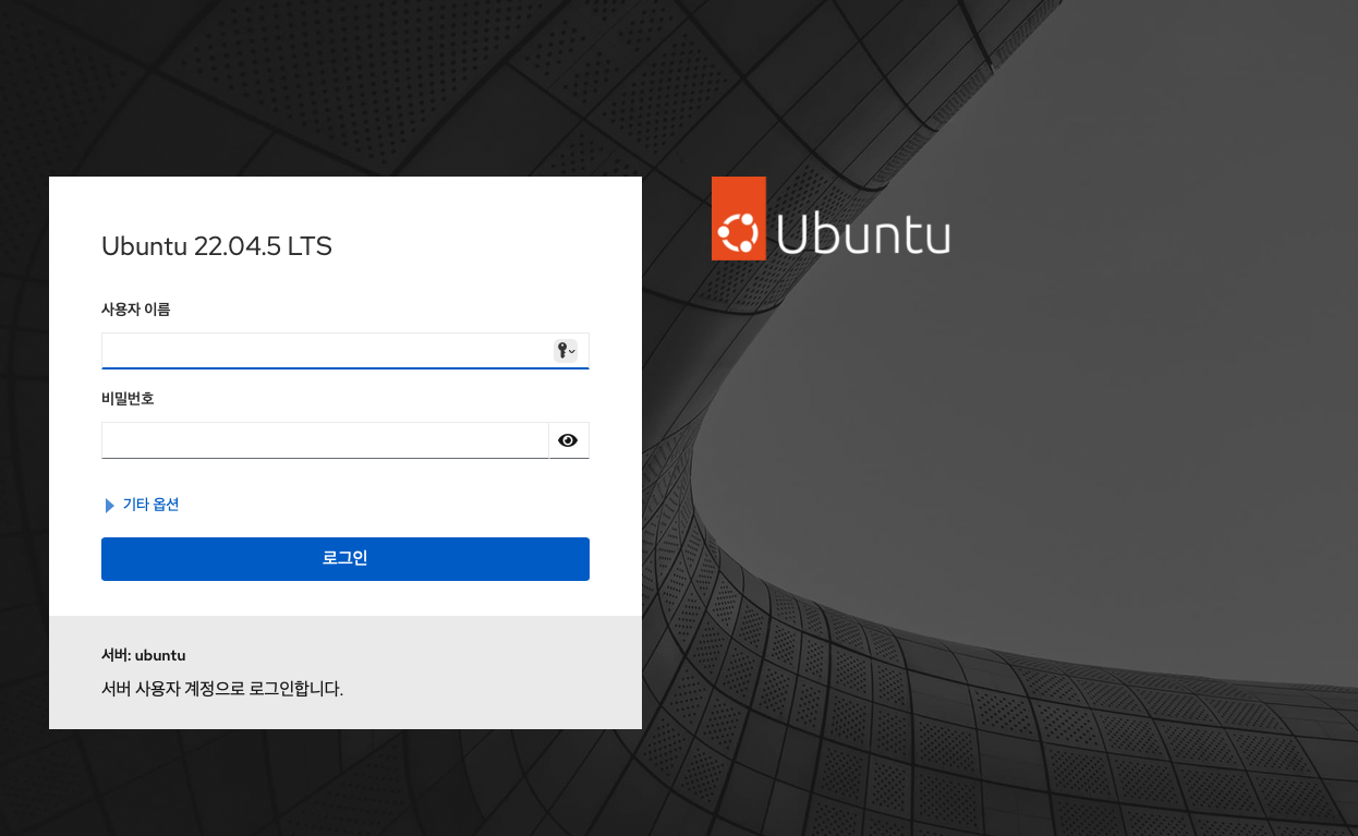- 로그인 화면 : 계정과 비밀번호는 리눅스의 계정, 비밀번호와 동일