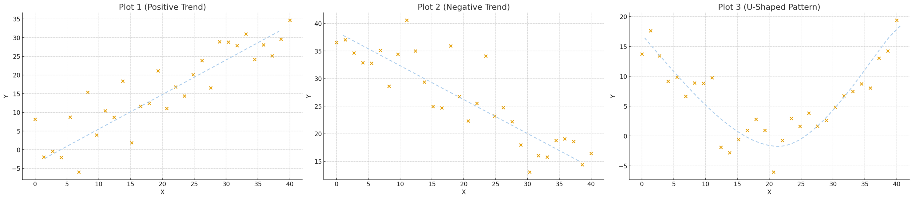 - X 값의 변화에 따라 Y 값의 분포가 달라진다.